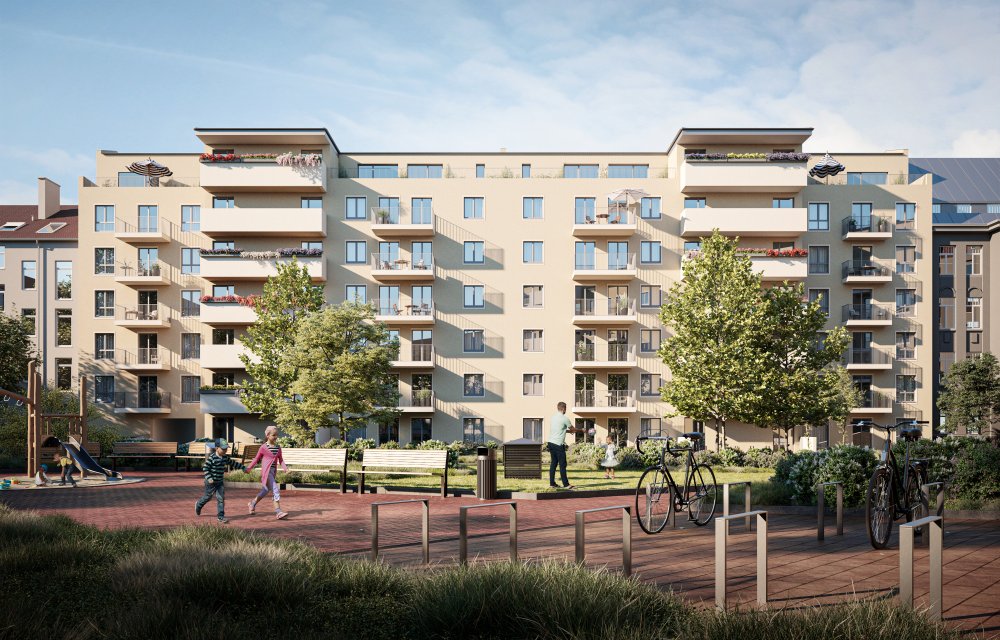 Auch für Mobilität ist gesorgt: Die Tiefgarage des Gebäudekomplexes bietet 62 PkW-Stellplätze. Insgesamt stehen weitere 122 Fahrradstellplätze zur Verfügung. Die Tram-Haltestelle liegt nur 30 Meter entfernt