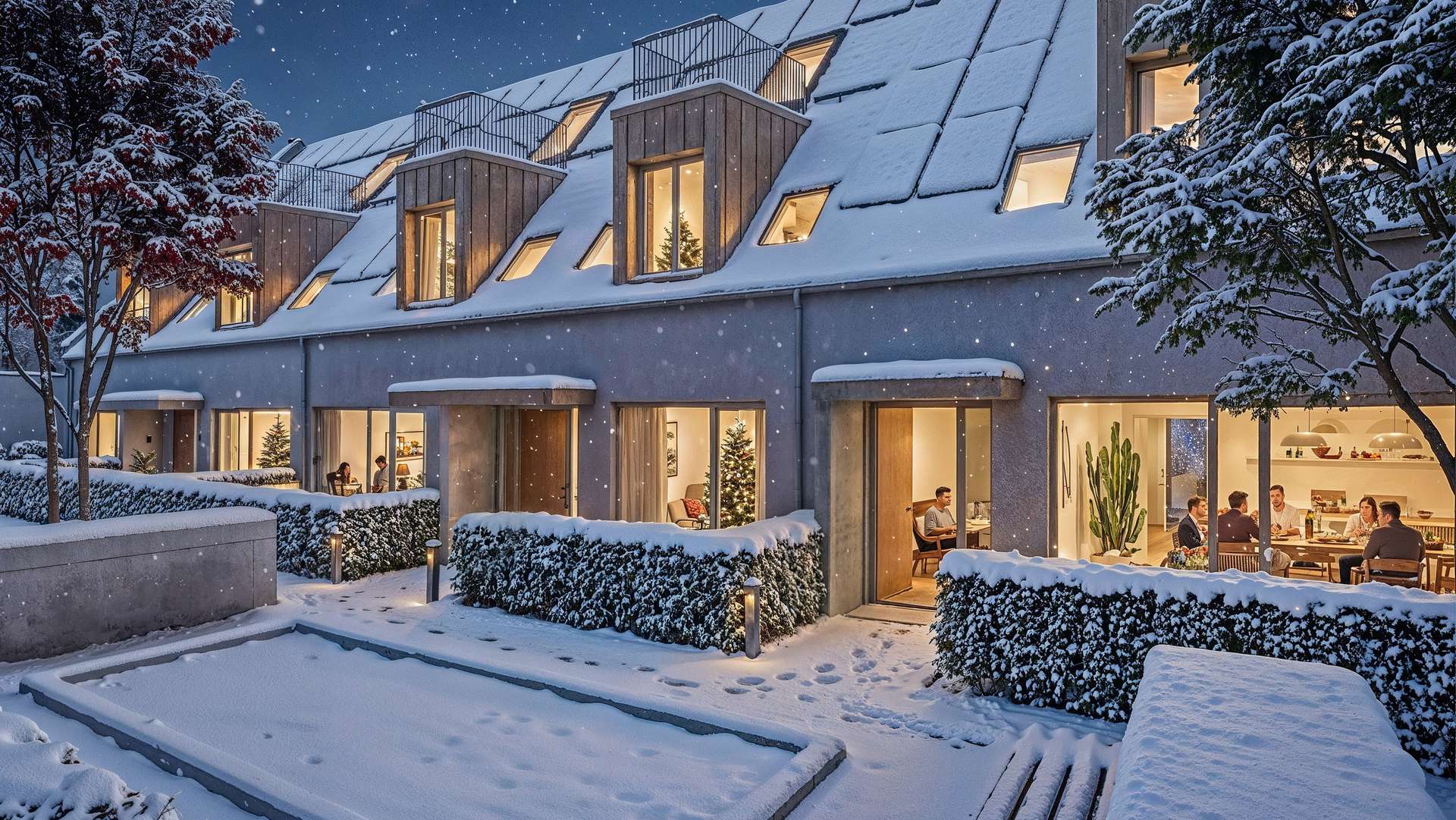 Die Häuser mit vier oder fünf Zimmern eröffnen Freiheit – Platz für Familie und Zusammensein, aber auch Flächen für Arbeit und Rückzug. Jeder Raum ist durchflutet von Licht und zeichnet sich durch klare Linien und hochwertigen Materialien aus. Die offene Wohnküche wird zum Mittelpunkt des alltäglichen Lebens, während private Rückzugsorte bewusst gestaltet wurden.