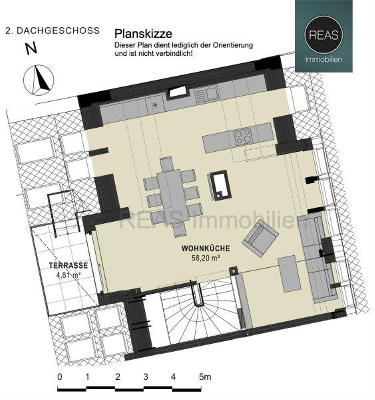 Raumaufteilung der Wohnung im 2. Dachgeschoss:
