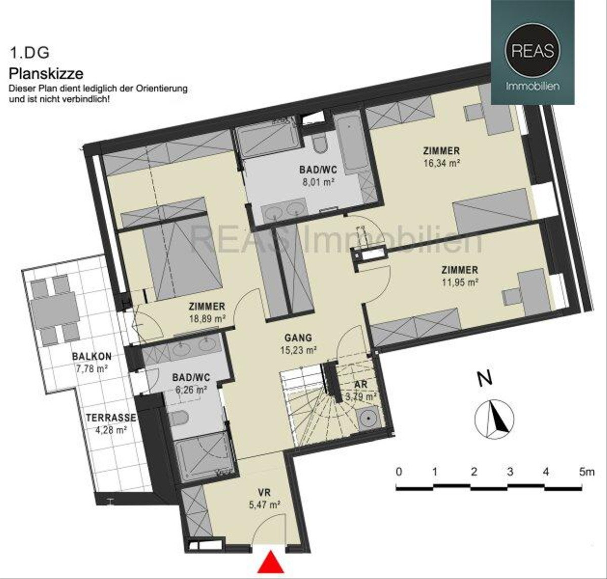 Zum Verkauf gelangt eine luxuriöse Dachgeschoss - Maisonette Wohnung (klimatisiert) mit 3 Terrassen als Erstbezug nach komplett neuer Errichtung!