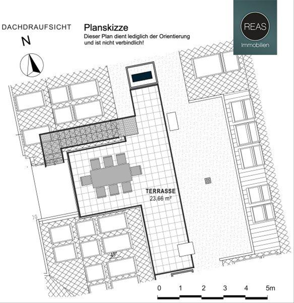 - 1 Terrasse (Hofseite, Ruhelage) samt Aufgang/Treppe zur Dachterrasse