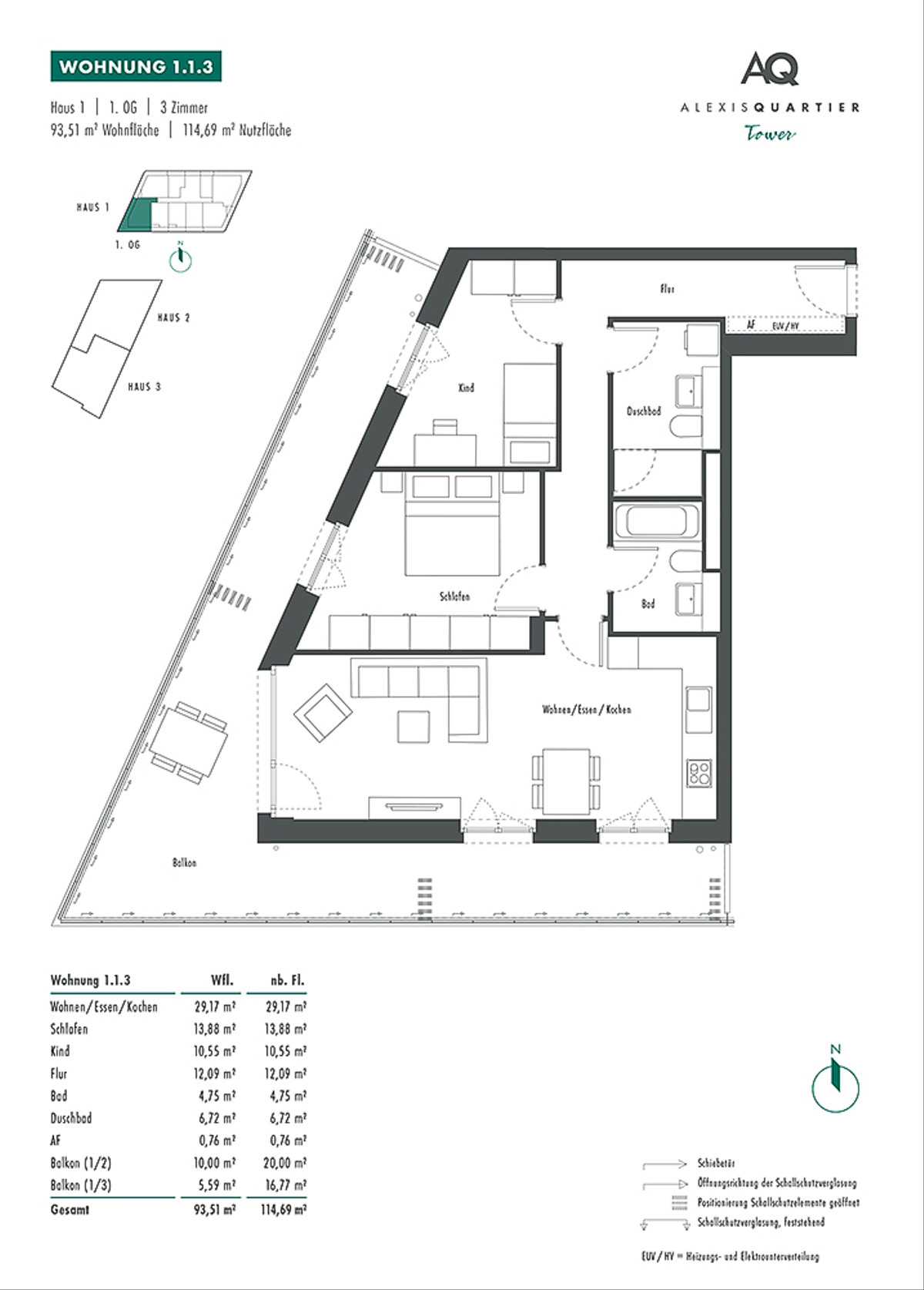 ALEXISQUARTIER - Parkside & Tower bilden gemeinsam ein architektonisch aufeinander abgestimmtes Ensemble am neuen Quartierspark. Während "Parkside" mit zurückhaltender Eleganz überzeugt, setzt der "Tower" als markanter Hochpunkt einen selbstbewussten städtebaulichen Akzent. Klare Linien, helle Fassaden, bodentiefe Fenster und umlaufende Balkone mit verschiebbaren Glasflächen prägen sein charakterstarkes Erscheinungsbild.
