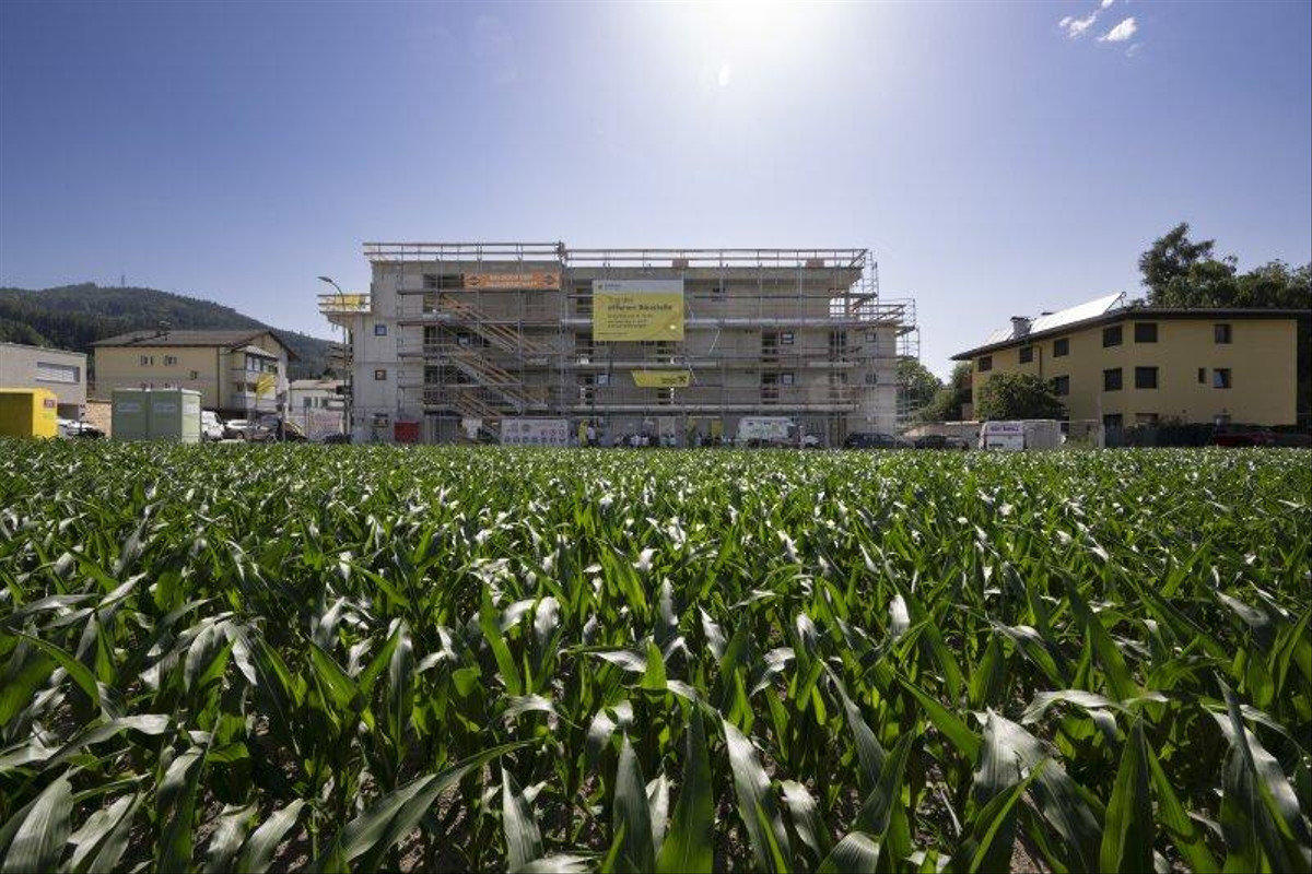Eingebettet zwischen grünen Wiesen und Feldern entsteht ein architektonisch sehr ansprechendes Projekt mit 20 Wohnungen, welche alle nach Süd-Westen ausgerichtet sind.