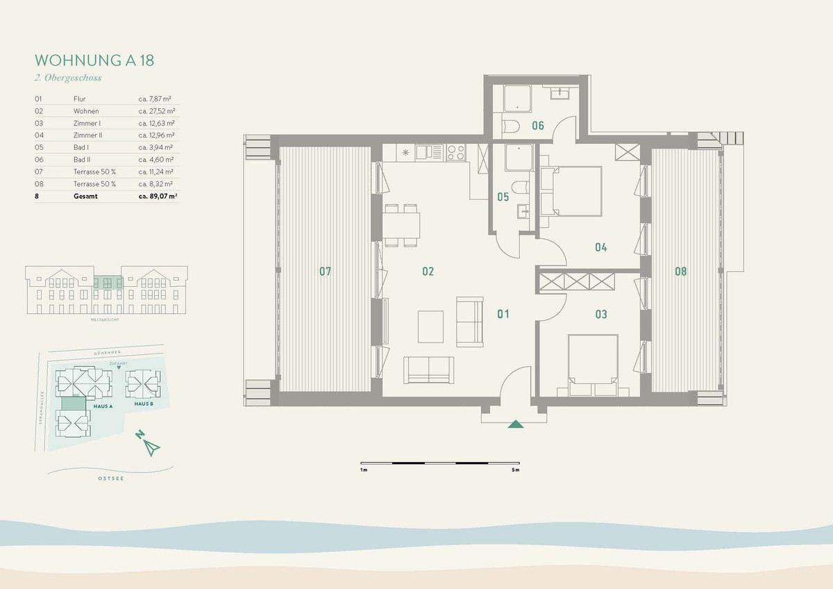 Die 88,84 qm2 Wohnfläche sind lichtdurchflutet und barrierearm gestaltet, was ein angenehmes Wohngefühl garantiert. Die Wohnung eignet sich hervorragend für die Ferienvermietung, die Festvermietung oder auch für die Eigennutzung.