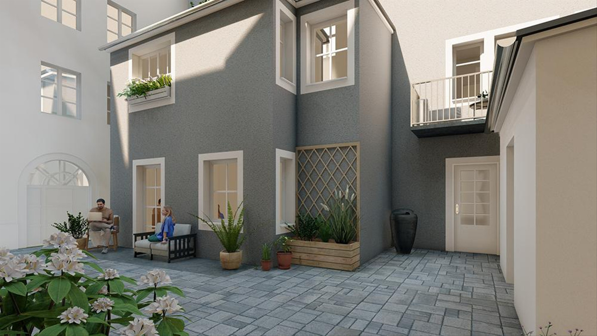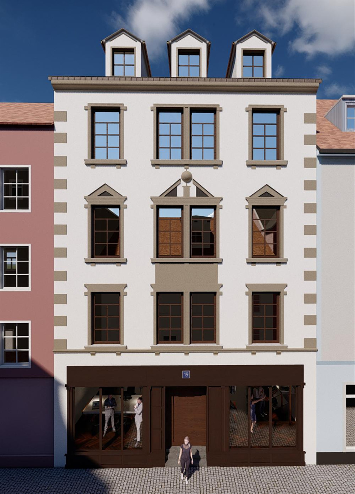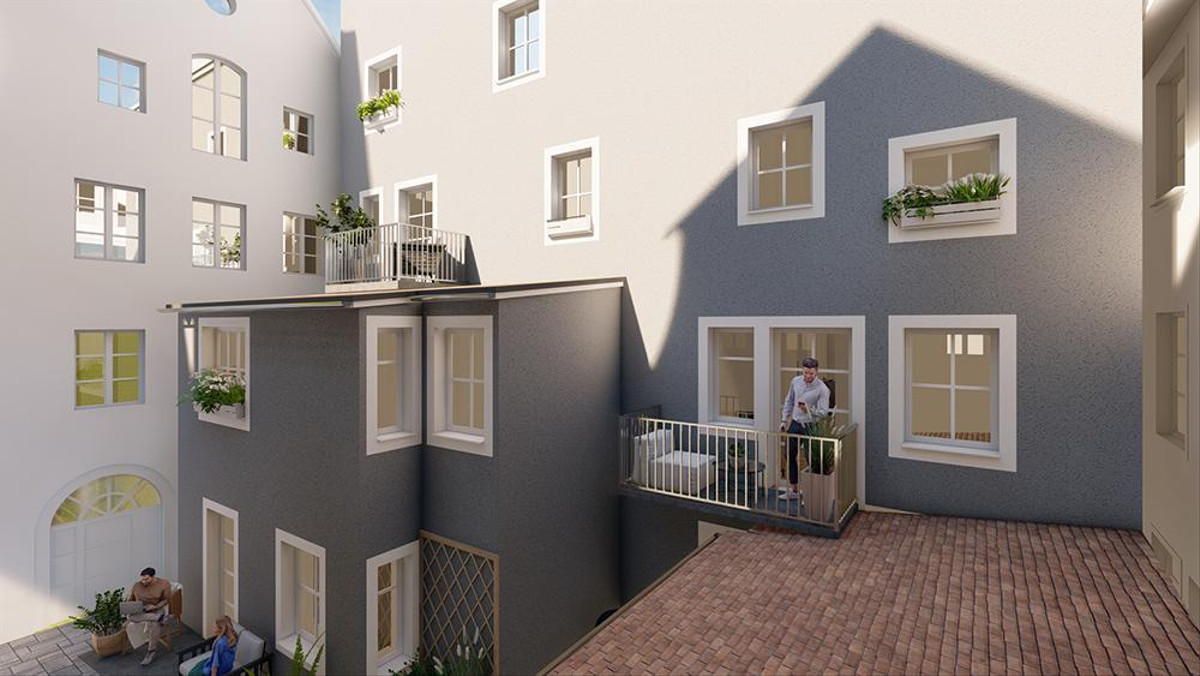 Geplant sind bei der Sanierung 2 Gewerbeeinheiten im Erdgeschoss sowie 8 Wohneinheiten mit 1-4 ZKB zwischen ca. 22 m² bis 125 m² Wohnfläche, teilweise mit Balkon/Dachterrasse zum Innenhof. Großes Highlight für die Lage und im Altbaubereich ist zudem der geplante Aufzug. Jede Wohneinheit verfügt zusätzlich noch ein eigenes Kellerabteil.