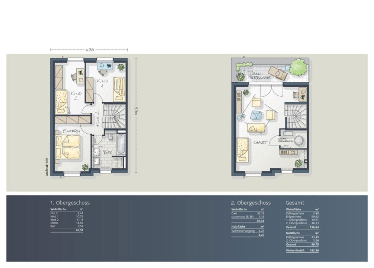 - 2. BA: Vorläufiger Bedarfsausweis je nach Haus: W145: 19,2 kWh/(m²a), W232: 20,0 kWh/(m²a), Baujahr 2021, Energieeffizienzklasse A+