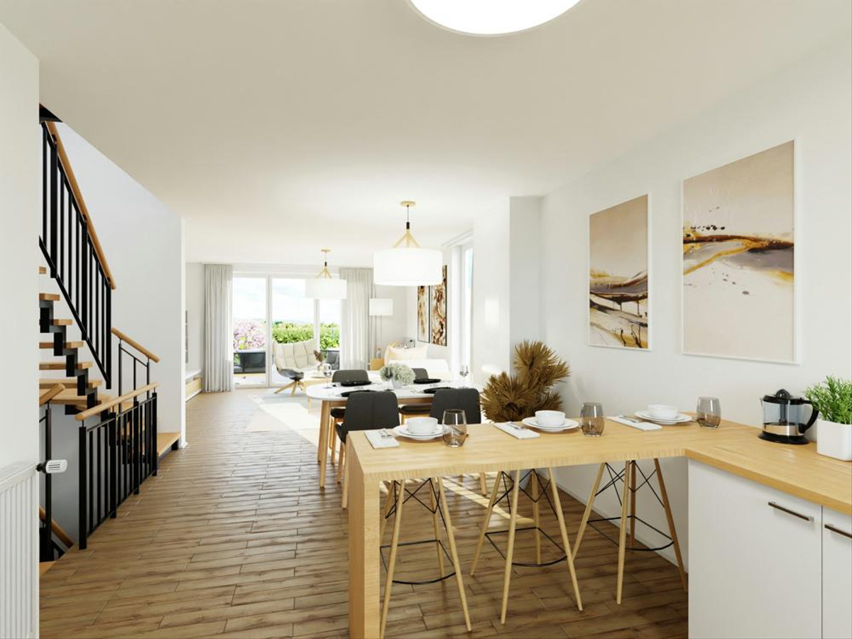 Die Stadthäuser erstrecken sich über drei Etagen und überzeugen durch helle Räume, intelligente Grundrisse und eine moderne Gestaltung mit hochwertigen Details wie anthrazitfarbenen Fenstern und Haustüren. Hier entsteht ein Wohnumfeld, das Funktionalität, Stil und Lebensqualität in idealer Weise vereint.