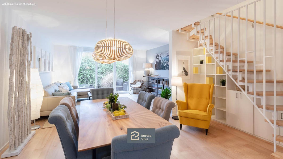 Vom Wohnbereich gelangt man direkt auf die Terrasse. Der Garten schließt sich sanft an und erweitert das Wohnen nach draußen. Ein Frühstück im Freien, ein Abend im Grünen, barfuß durch das Gras. Wer hier wohnt, spürt jeden Tag, was Zuhause wirklich bedeutet.