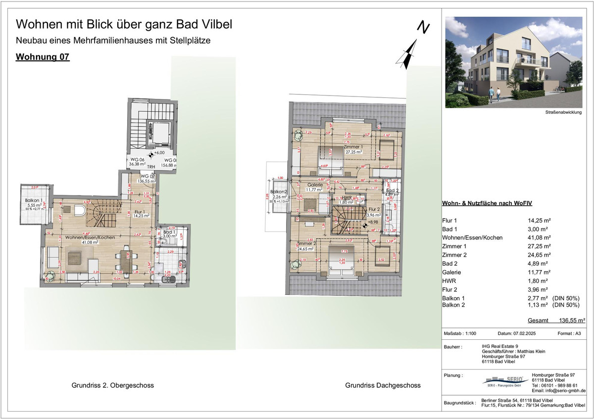 Hier wird in bevorzugter Lage von Bad Vilbel ein exklusives Mehrfamilienhaus mit 8 hochwertigen Wohneinheiten, inkl. Stellplätze errichtet. Hier wohnt es sich absolut ruhig mit einem überragenden Blick über ganz Bad Vilbel.