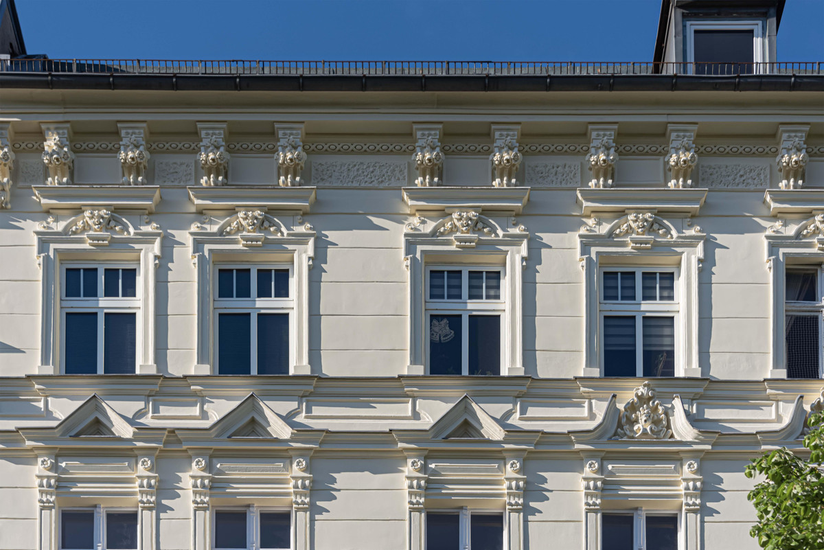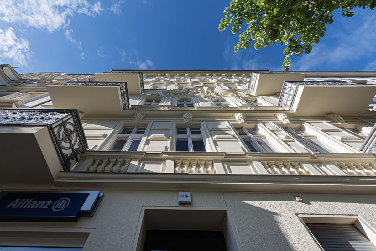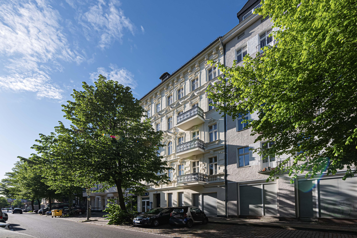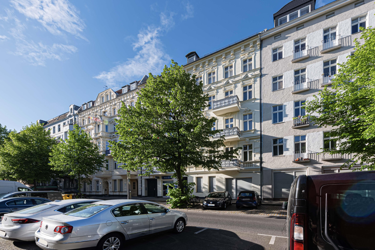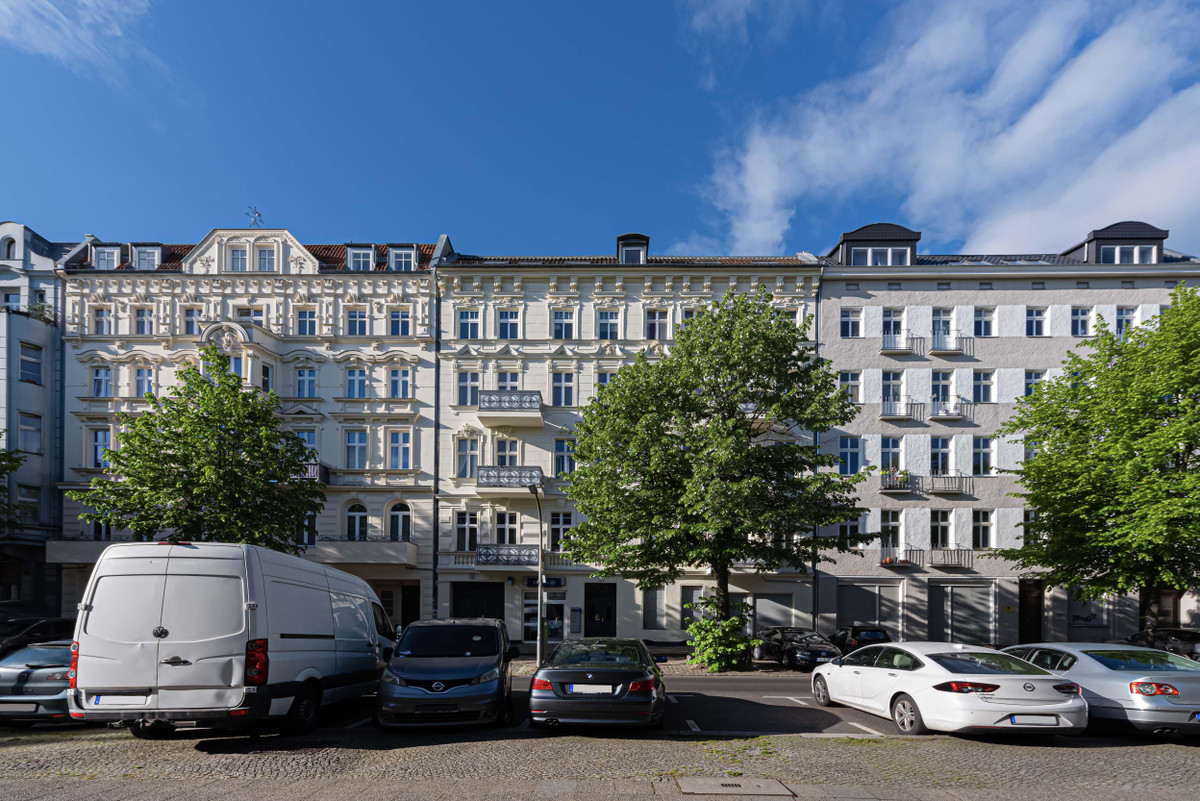Das klassische Gründerzeithaus, gelegen nahe dem Falkenseer Platz, fügt sich harmonisch in die Umgebung mit Bauten der Kaiserzeit ein. Schon auf den ersten Blick verzaubert die Fassade, die in warmem Gelb gehalten und mit wunderschönen Stuckverzierungen geschmückt ist. Von den insgesamt 29 Wohneinheiten im Vorderhaus, im Hinterhaus, Seitenflügel und der Remise werden 14 bezugsfreie Eigentumswohnungen angeboten. Die 1- bis 5-Zimmer-Wohnungen verfügen über ca. 33 m² bis 127 m² und wurden hochwertig saniert. In diesem historischen Ambiente finden Sie ein stilvolles Zuhause.