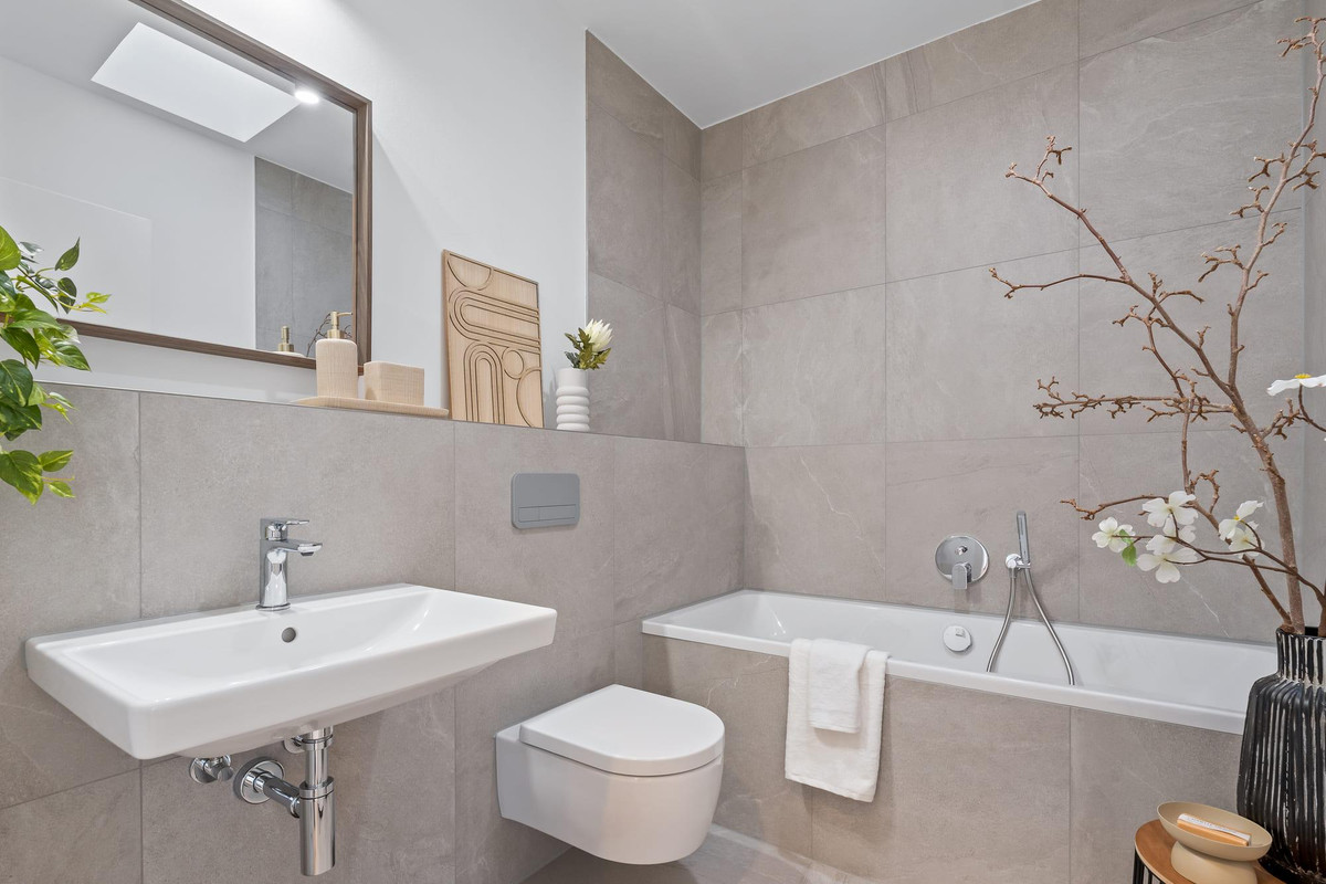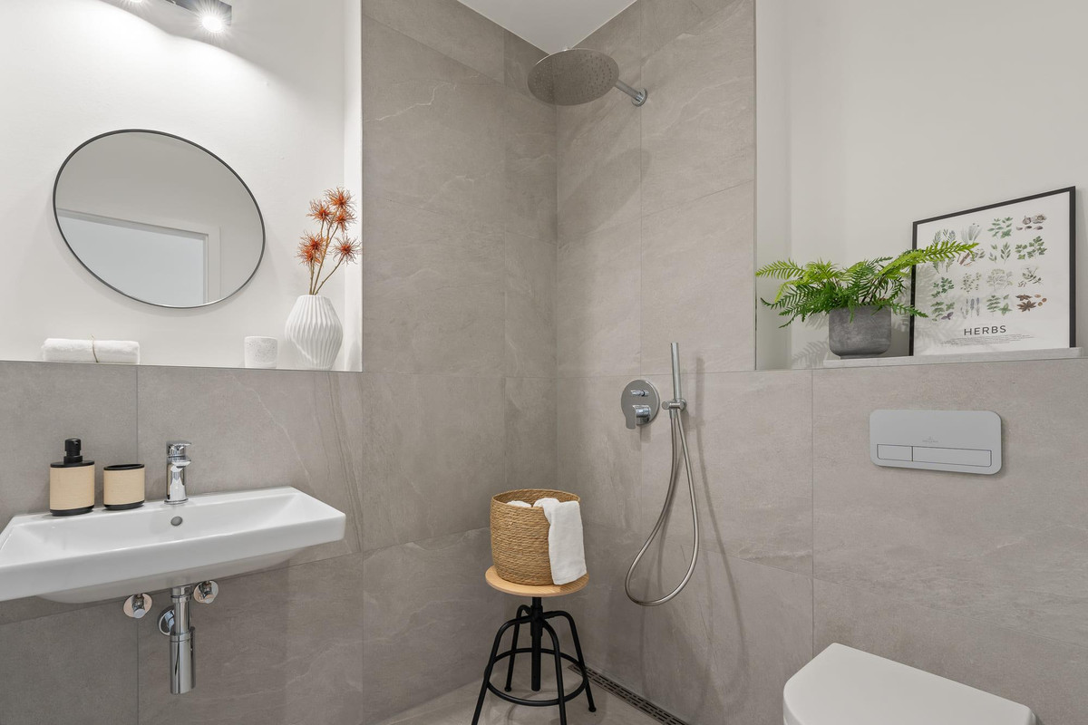 Die Ausstattung erfüllt hohe Ansprüche. Echtholzparkett von Bauwerk, Bäder mit Produkten von Villeroy & Boch und Kermos sowie wertige Details machen das Wohnen komfortabel und modern.