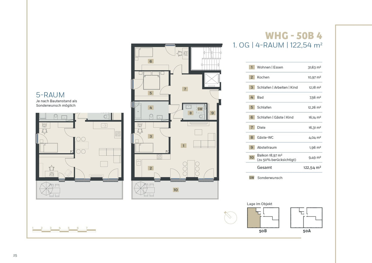 - attraktive 3- und 4-Raum-Konzepte, 5-Raum-Konzept je nach Bautenstand als Sonderwunsch möglich