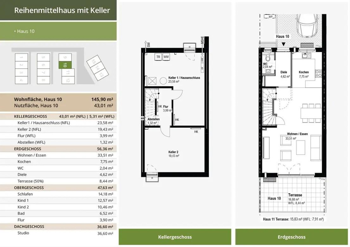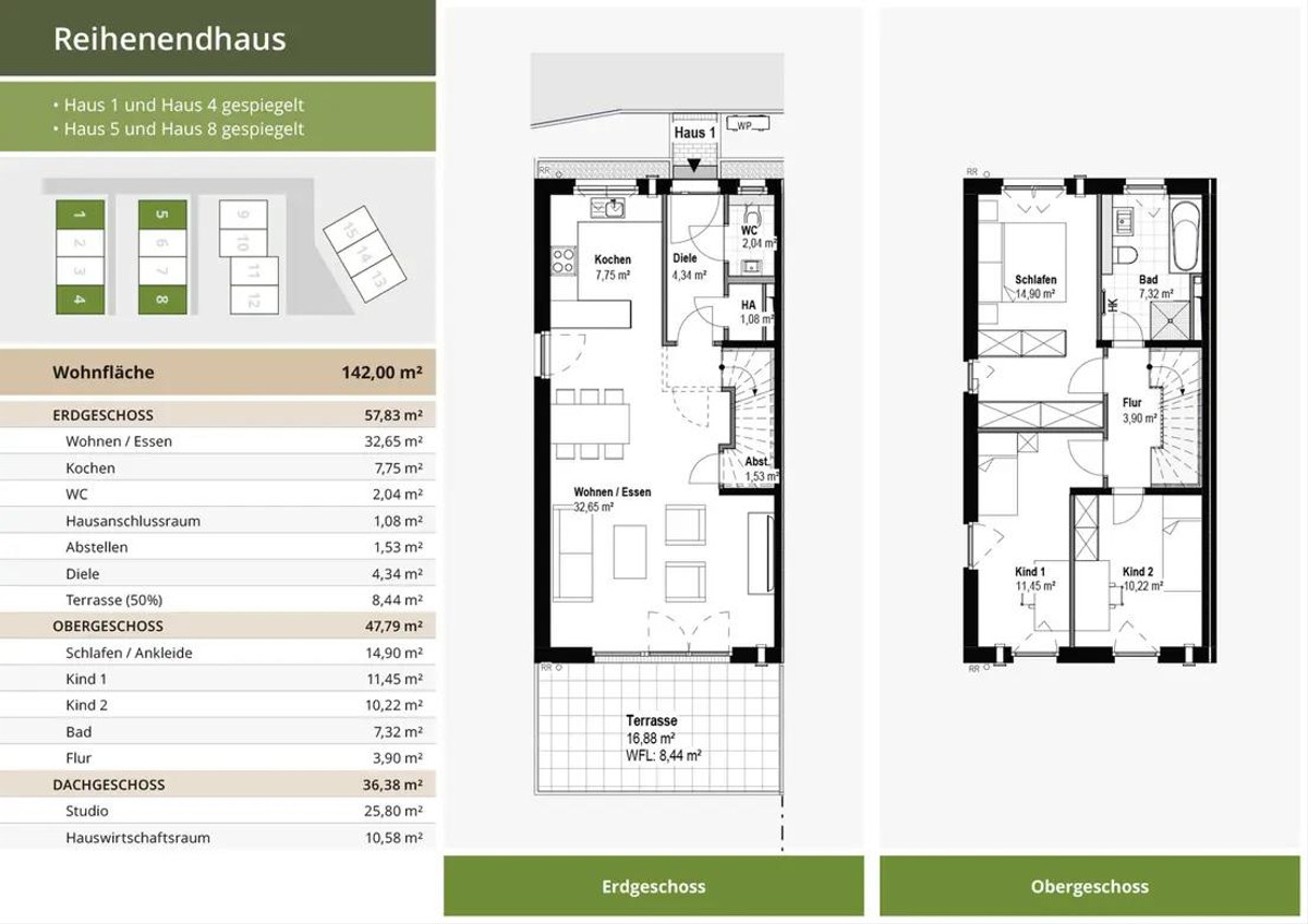 Die großzügigen Wohnflächen von rund 139 m² bis 146 m² lassen Raum für individuelle Gestaltung und vielseitige Nutzungsmöglichkeiten. Genießen Sie die sonnigen Südgärten und Südterrassen, die sich perfekt zum Grillen und Entspannen eignen und ein harmonisches Verbindungsglied zwischen Drinnen und Draußen schaffen.