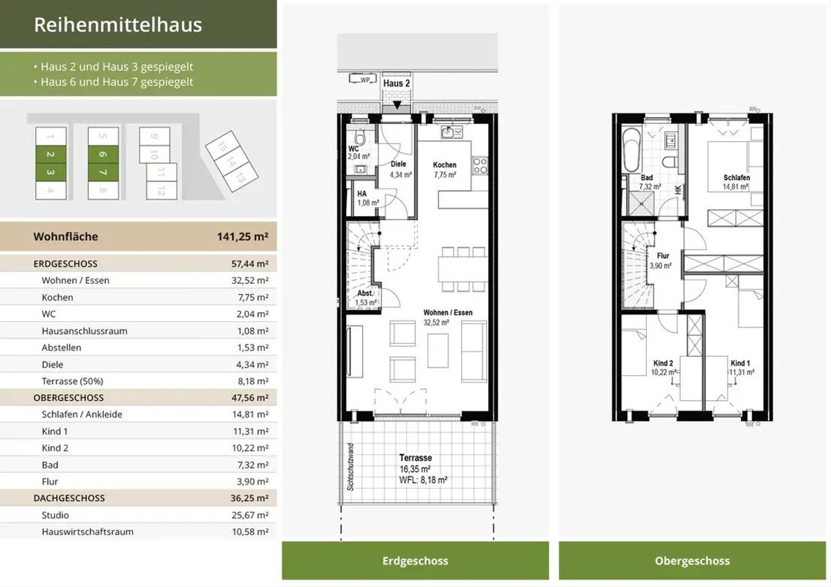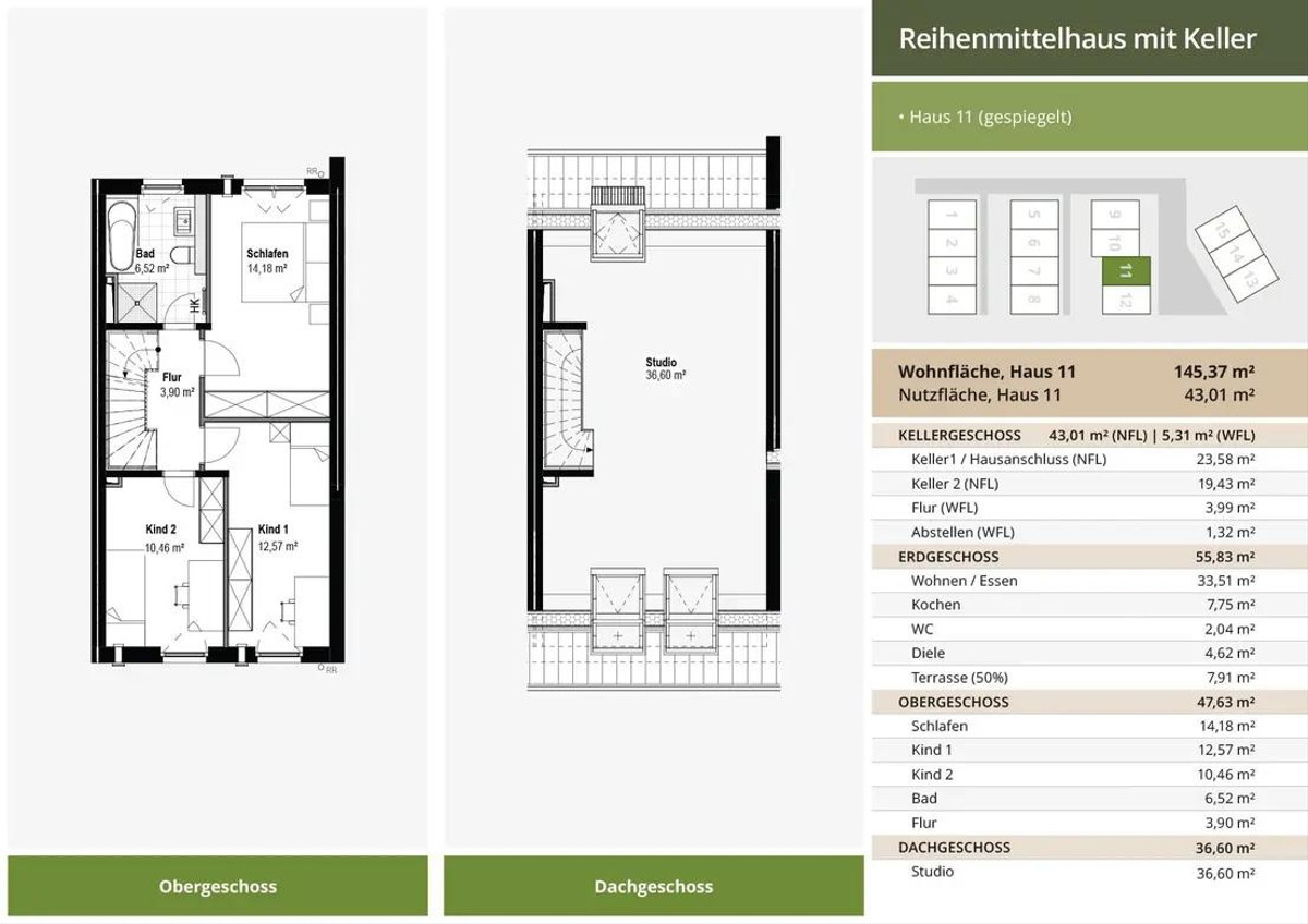 Selbstverständlich haben Sie die Möglichkeit, den Grundriss Ihres zukünftigen Hauses mitzugestalten. Die Fußbodenheizung im Erdgeschoss, Obergeschoss und Dachgeschoss sorgt für ein behagliches Wohngefühl – ohne störende Heizkörper. In Kombination mit der energieeffizienten Luft-Wasser-Wärmepumpe wird der Energieverbrauch deutlich reduziert, was nicht nur zu Einsparungen in der Haushaltskasse führt, sondern auch die Umwelt schont. Die Häuser werden als KfW-Effizienzhaus 55 errichtet. Jedes Haus verfügt über eine eigene Garage. Mit der hochwertigen Ausstattung erleben Sie ein Maximum an Wohnqualität in Ihrem neuen Zuhause in Mülheim-Heißen. Lassen Sie sich von der perfekten Kombination aus moderner Architektur, großzügigen Räumlichkeiten und energieeffizienter Bauweise begeistern. Herzlich Willkommen in Ihrem neuen Zuhause!
