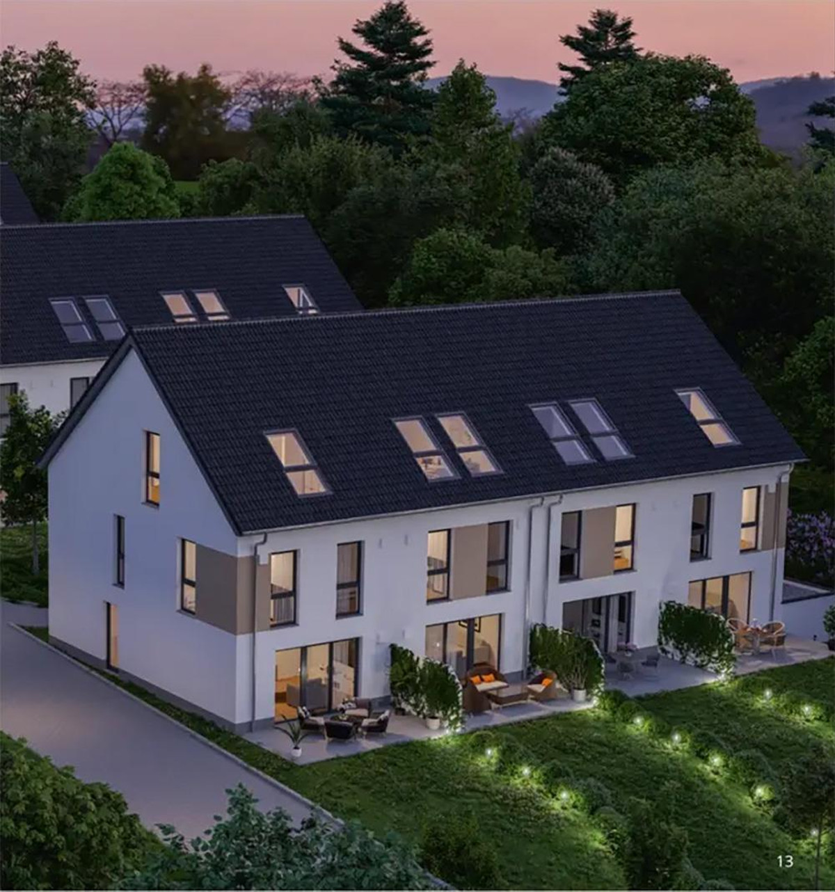 In einer verkehrsberuhigten und damit besonders kinderfreundlichen Umgebung entstehen 15 exklusive Einfamilienhäuser, von denen 4 Häuser komplett unterkellert werden. Mit moderner und zeitgemäßer Architektur beeindrucken diese Einfamilienhäuser nicht nur von außen, sondern laden auch im Inneren zum Wohlfühlen ein.