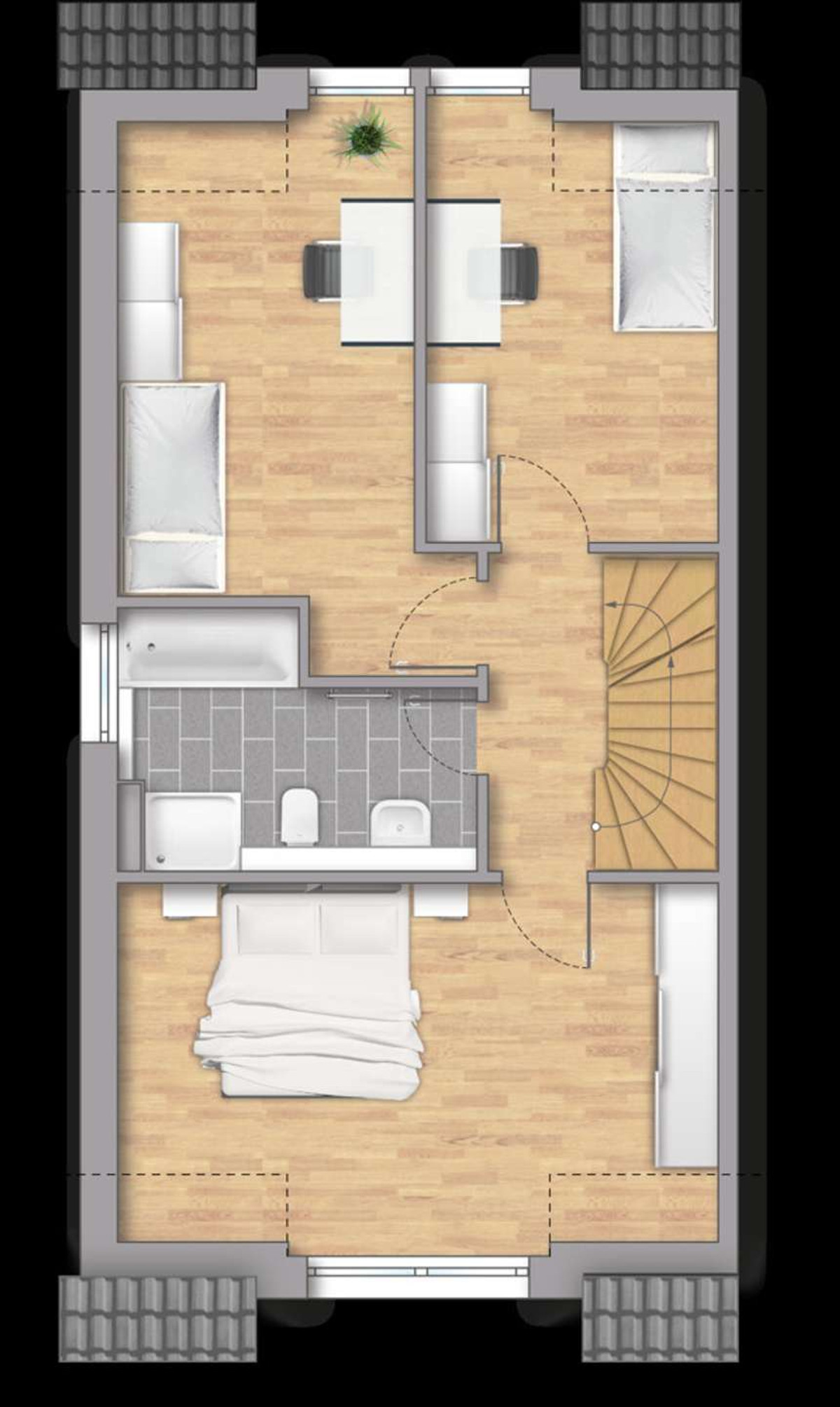 Im Dachgeschoss befindet sich der Technik-/und Abstellraum, der genug Stauraum für Koffer & Co. bietet.