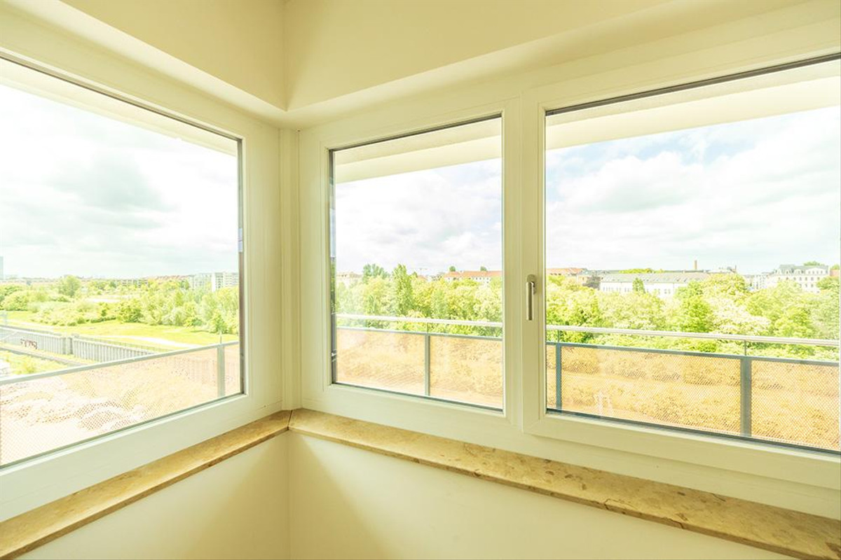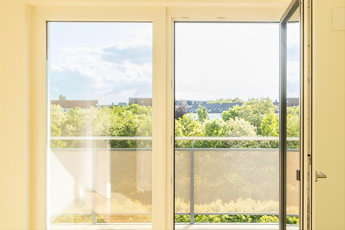 - Fenster mit Bi-Color-Kunststoffrahmen und Dreifachverglasung sowie teilweise abschließbaren Edelstahlbeschlägen