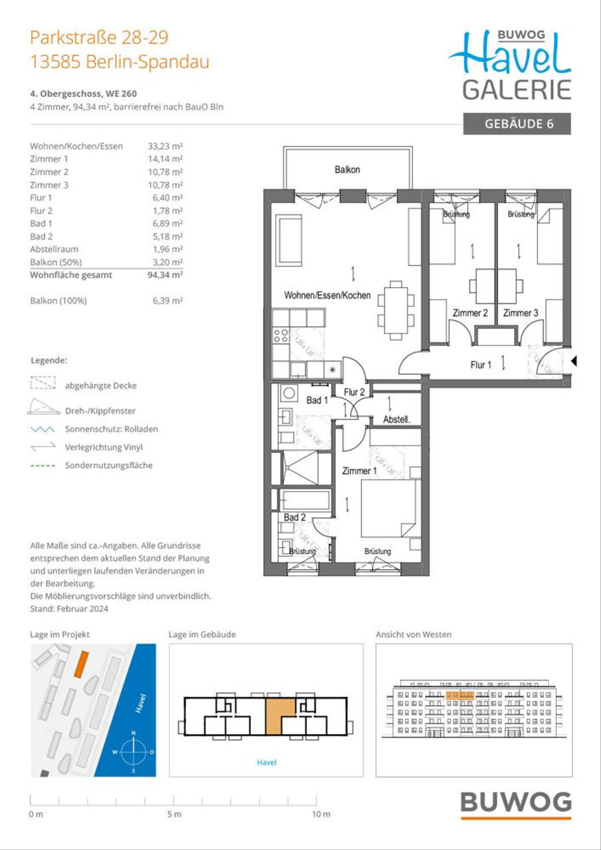 Die ersten beiden Häuser der BUWOG HAVELGALERIE mit 86 Wohnungen werden bereits im Sommer 2024 bezugsfertig sein. In Gebäude 2 stehen 44 1,5- bis 4-Zimmer-Wohnungen auf fünf Etagen zur Verfügung, in Gebäude 4 sind es 42 Wohnungen. Sie haben die Wahl!