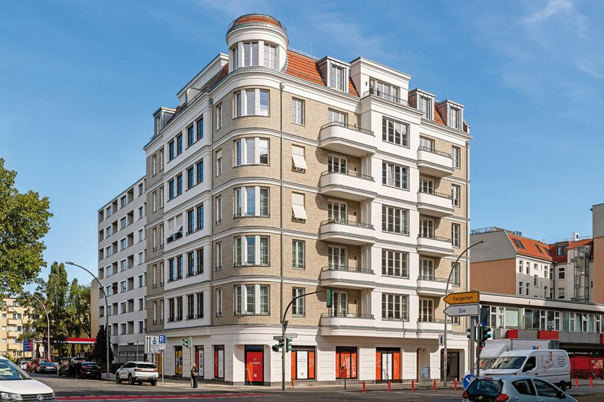 zeitgenössisch und schaffen ein kompromisslos hohes Wohnniveau. Zum Beispiel die großzügigen Eckfenster zur Ecke Martin-Luther- und Grunewaldstraße. Die Eckwohnung im Dachgeschoss wartet mit einem über 40 Quadratmeter großen, stilvollen Turmzimmer auf. Balkone, Wintergärten und Terrassen hingegen waren