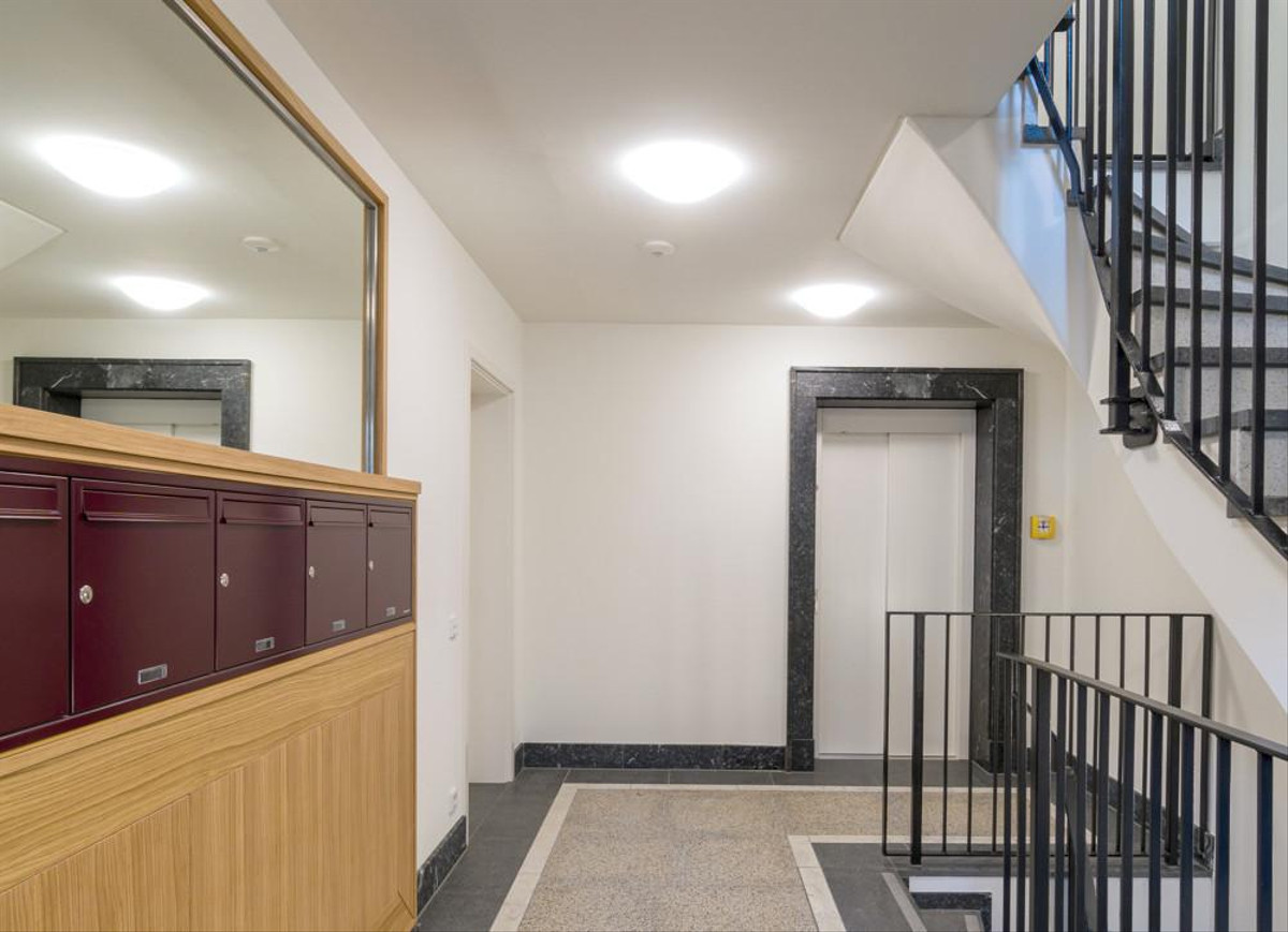 Trotz seiner Größe hält sich das CASON Gartenhaus vornehm zurück. Es erhebt sich inmitten des liebevoll begrünten Innenhofs hinter den straßenseitigen Bauten. Seine ausgewogenen Proportionen bestärken den Eindruck der souveränen Ruhe. Was auf den ersten Blick nicht sichtbar ist: die raffinierten, zeitgenössischen Details seiner 5 Eigentumswohnungen.