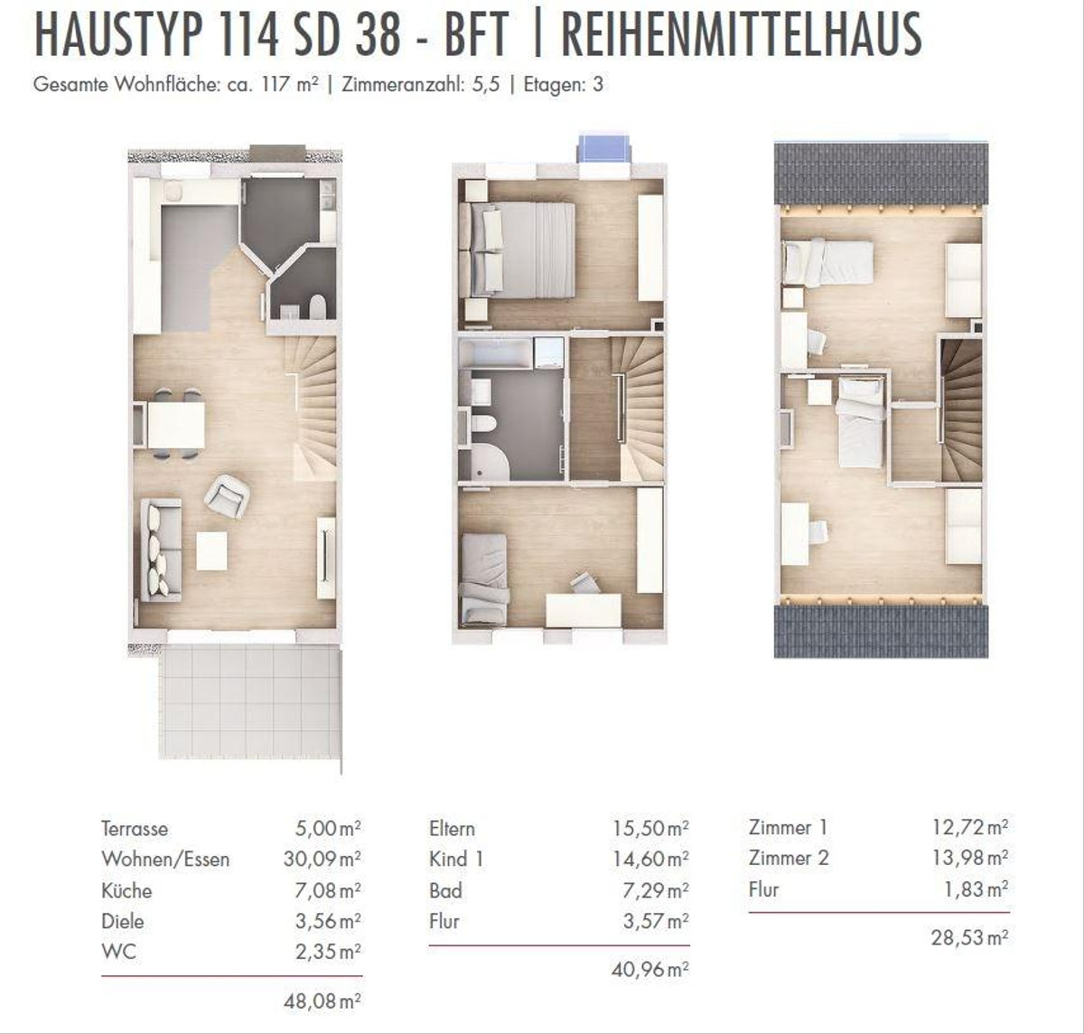 Alle Häuser werden im energieeffizienten KfW-55-Standard errichtet und über eine zentrale Energieversorgungsanlage auf Basis erneuerbarer Rohstoffe betrieben – kein Contracting. Diese nachhaltige Form der Wärmeversorgung sorgt für niedrige Betriebskosten, umweltfreundliche Energieeffizienz und zukunftsorientiertes Wohnen.