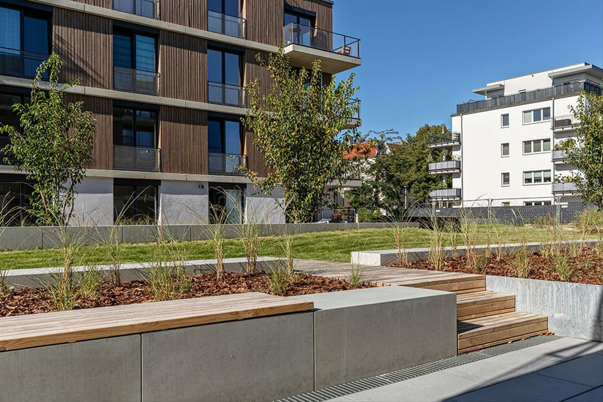 - Je ein Stellplatz und ein Kellerabteil pro Wohnung in der Tiefgarage