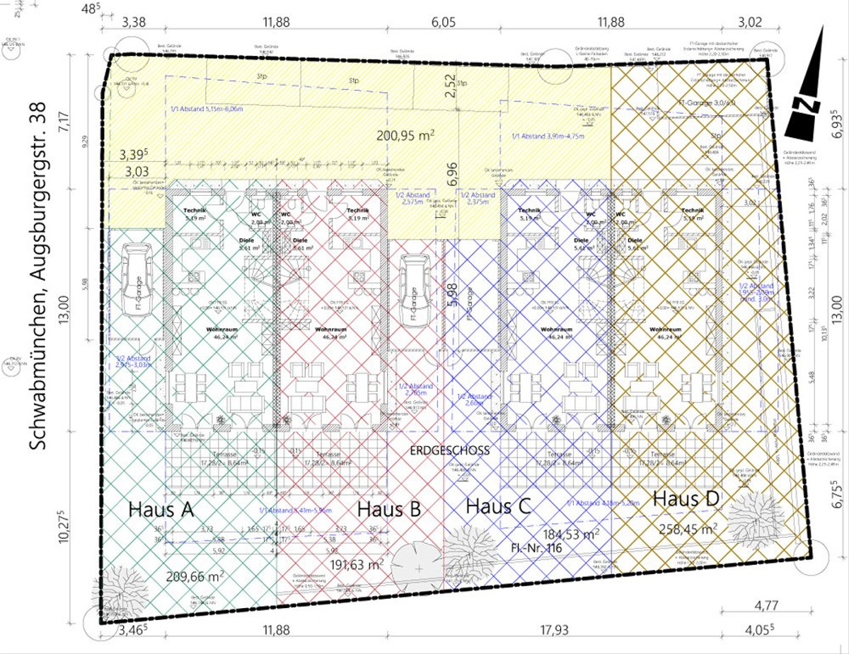 Hier entstehen vier modere Toskana Doppelhaushälften im Zentrum von Schwabmünchen.