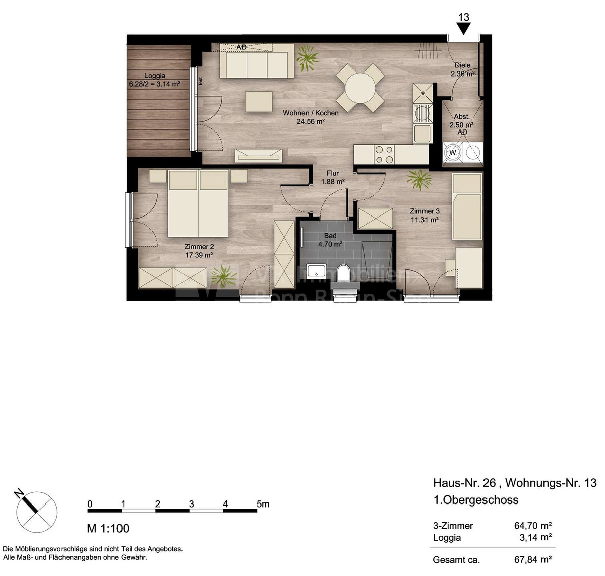 Diese moderne 3-Zimmer-Eigentumswohnung mit ca. 67,84 m² Wohnfläche überzeugt durch einen effizienten Grundriss, eine offene Wohn-/Küchenstruktur sowie eine angegliederte Loggia und sorgt so für ideal für stabile Vermietungserträge. Sie ist Teil des zeitgemäßen Neubau-Mehrfamilienhaus-Ensembles terraBuschkaulerFeld und bietet Anlegern eine planbare Cashflow-Basis mit attraktiven steuerlichen Abschreibungsmöglichkeiten.