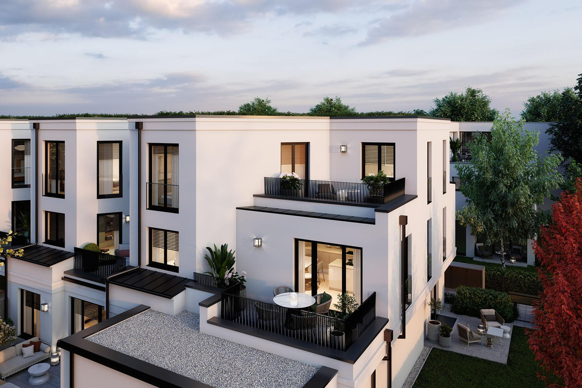 Jedes der sechs Stadthäuser ist einzigartig. Die versetzten Fronten mit französischen Balkonen, die nach Süden bzw. Westen ausgerichteten Terrassen in jeder Etage und die zum Teil bodentiefen Fenster bringen Spannung in den Baukörper. Die wohlüberlegte Architektur lässt nicht nur viel Licht ins Haus, sondern sorgt auch dafür, dass jedes Haus ein Unikat ist.