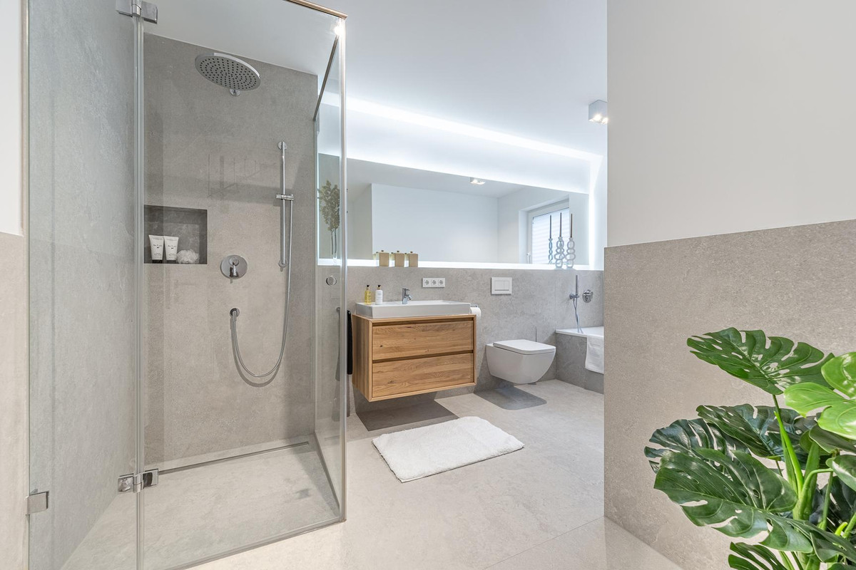 Die Badezimmer glänzen nicht nur durch Funktionalität und außergewöhnliches Design, sondern überzeugen auch mit einer stilvollen Komplettausstattung.