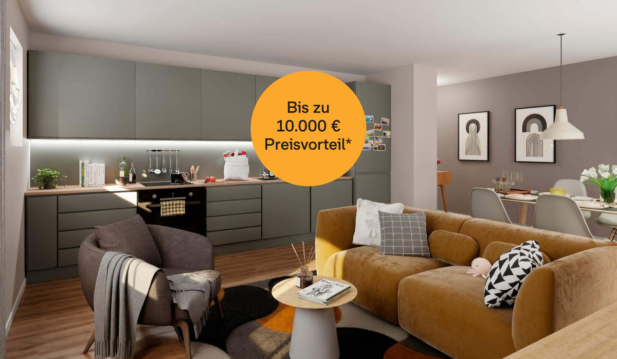 Nutzen Sie die Gelegenheit und sparen Sie bis zu 10.000 Euro beim Kauf Ihrer neuen Eigentumswohnung. Wir beraten Sie persönlich zu den passenden Optionen und unterstützen Sie bei Ihrer Entscheidung. *Gültig bei Beurkundung im Zeitraum vom 02.10.2025 bis 19.12.2025.
