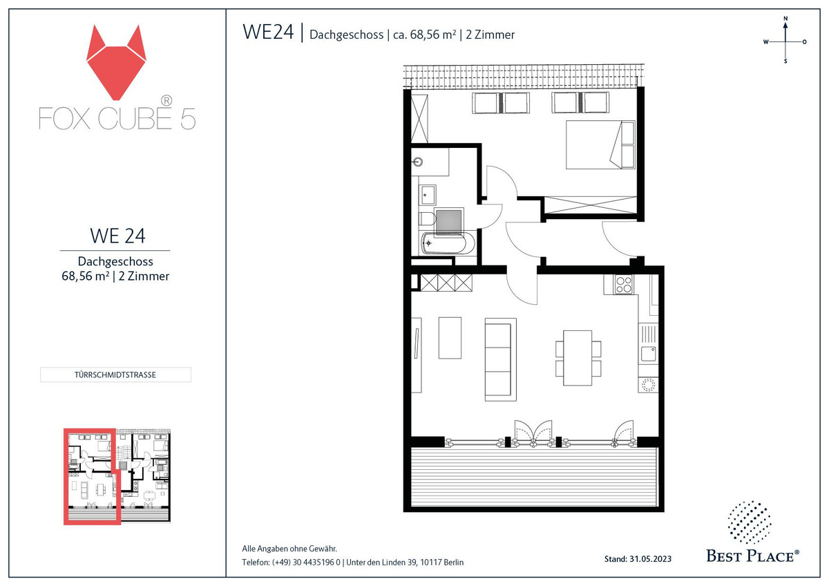 Das moderne Gebäude entsteht mit der besten Energieeffizienz A+, Photovoltaikanlage und Luft-Wasser-Wärmepumpe an einer schmalen Kopfsteinpflasterstraße mit verkehrsberuhigter 30er-Zone. Gleich davor liegt der Türrschmidtplatz – ein hübsch angelegter Stadtplatz. Fox Cube 5 bietet auf sechs Etagen ein modernes Wohnerlebnis für Singles, Studenten und Paare. Der Aufzug bringt die Bewohner auf die gewünschte Etage: UG bis DG. Fahrradstellplätze stehen im Keller und auf dem Hof zur Verfügung. Jede Wohneinheit hat ein Kellerabteil.