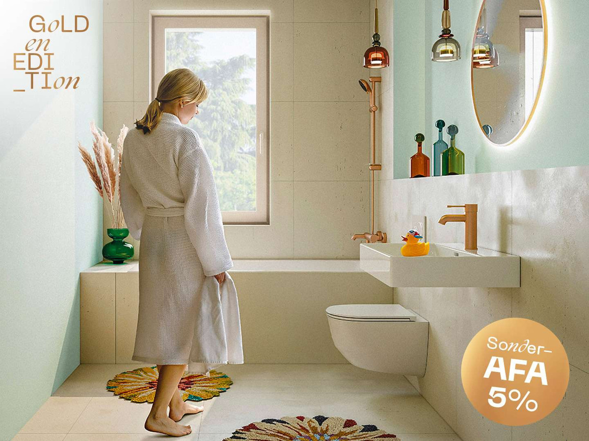 + Bäder mit großformatigen Fliesen und wahlweise optischen Highlights in 3-D-Optik