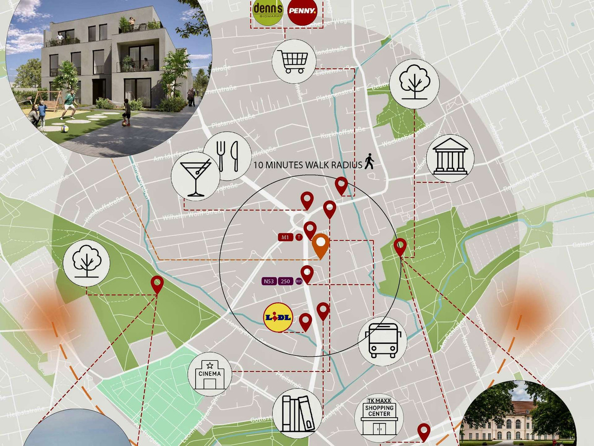 Bildung und Kultur: In der Nähe befinden sich Schulen, Kindergärten sowie kulturelle Einrichtungen, die das Viertel lebendig und familienfreundlich machen.