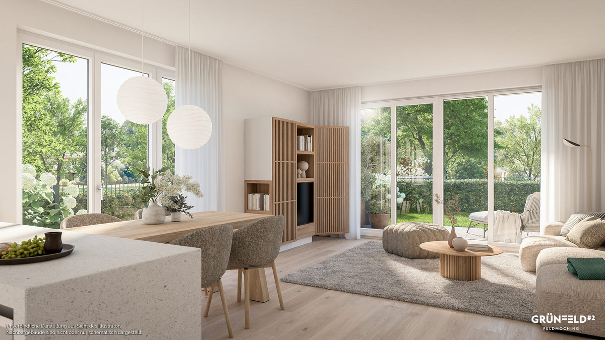 Schön, wenn die Stadt so nah ist, dass Sie ihren zahllosen Einladungen jederzeit folgen können. Noch besser, wenn Sie das nicht unbedingt müssen. Weil so vieles fürs tägliche Leben und Erleben noch näher ist: Einkaufsmöglichkeiten, Freizeitlandschaften, Kindergarten oder Schule. GRÜNFELD steht für München mit einem Plus an Erholung - und für Urbanität mit Charme.