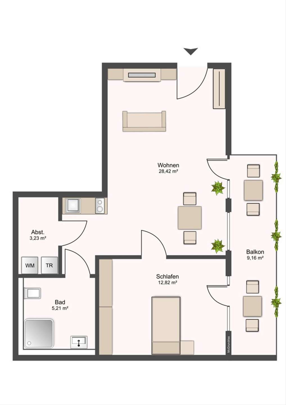 Der dargestellte Grundriss ist nicht maßstabgerecht und dient nur als Einrichtungsvorschlag. Maßgeblich sind die Angaben im Kaufvertrag.