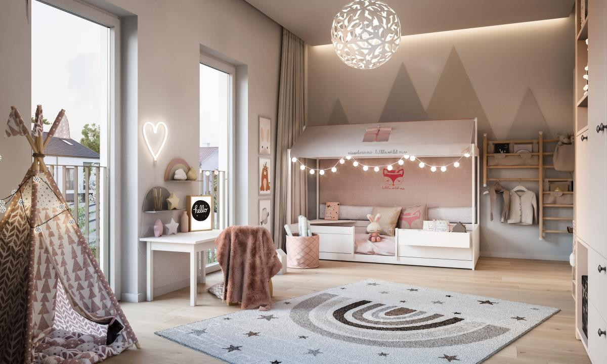 Träumen lässt es sich auch in den hellen Schlafzimmern der Obergeschosse. Eltern und Kinder können sich hier nach Herzenslust ausbreiten und einrichten. Für uneingeschränktes Wohlbefinden sorgen die Tageslichtbäder mit bodengleichen Duschen und Wannen.