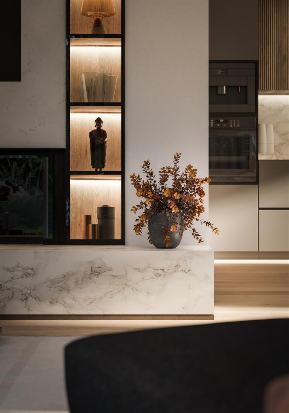 Die Architektur zeichnet sich durch Präzision und Eleganz aus. Gerade Formen und moderne Stilelemente wie bodengleiche Fenster sind ein Genuss für das Auge und zugleich herrlich funktional.