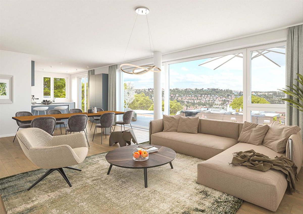 Die Hasenbergsteige erhebt sich zwischen dem Stuttgarter Süden und Westen. Das HIGHLIGHT dieser Wohnlage, die wir mit der ausgewählten modernen Architektursprache weiter unterstreichen, ist der unverbaubare Blick über den kompletten Stuttgarter Westen.