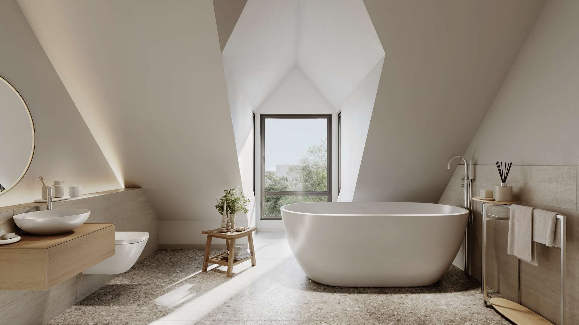 Dazu verfügt jede Wohnung über einen optimal ausgerichteten Freibereich: Sichtgeschützte Loggien bereichern die Einheiten in den Obergeschossen. Die gemütlichen Wohnungen im Dachgeschoss werden durch einladende Dachterrassen ergänzt. Ein Lift je Hauseingang und weitgehende Schwellen- freiheit in jedem Aufgang runden das Anwesen ab. In den Bädern sorgen sorgfältig abgestimmtes Feinsteinzeug, Markenarmaturen und formschöne Sanitärobjekte für viel Komfort und Atmosphäre. Willkommen in Ihrer eigenen Wellness-Oase!