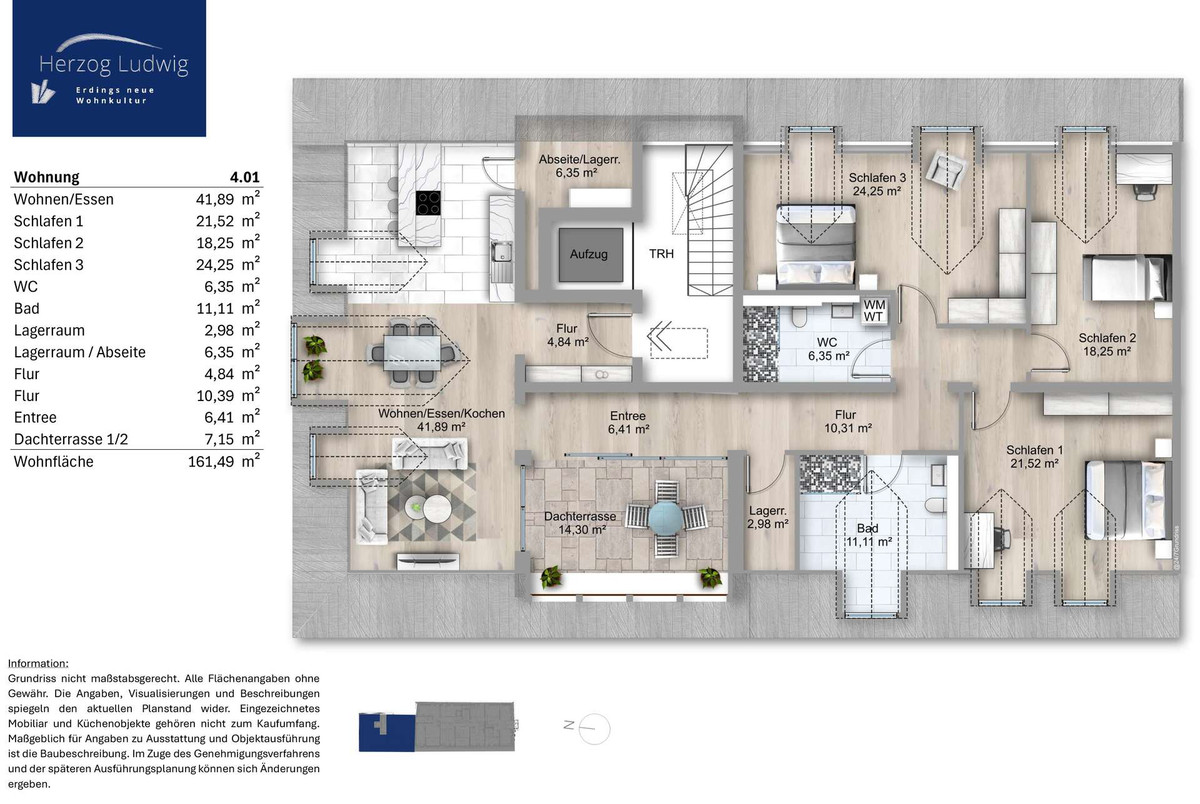 Panoramablick inklusive – in den Dachgeschosswohnungen steht man über den Dingen und genießt neben viel Freiraum auf der privaten Dachterrasse einen herrlichen Ausblick über die Dächer der Erdinger Innenstadt. Der Schnitt dieser Einheit ist optimal. Hier finden Sie, was Sie suchen: Eine urbane Wohnlage und modernen Wohnkomfort mitten in der ebenso lebenswerten wie weltoffenen Stadt Erding. Im HERZOG LUDWIG fühlt man sich „dahoam“: Ob als Zweit- oder Stadtwohnung, zum Selbstbezug oder zur Vermietung, ob chices Apartment oder geräumiges Leben unterm Dach – hier heißt Sie jede Wohnung mit viel Charme, Leichtigkeit und Wohlfühl-Atmosphäre willkommen.