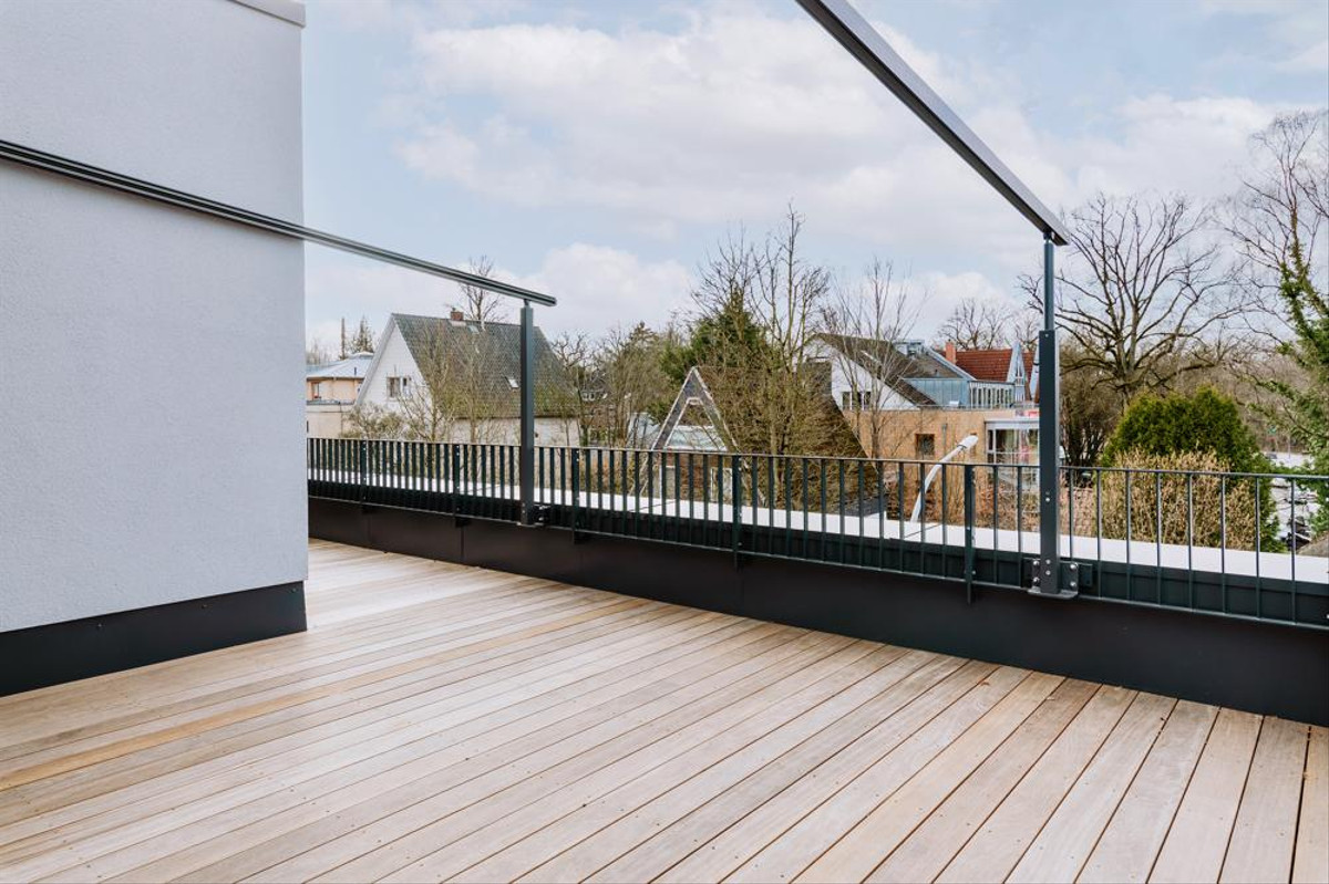 Das Penthouse Nr. 8 ist das Highlight des Projekts: Eine großzügige Dachterrasse in Westausrichtung eröffnet Ihnen einen einzigartigen Blick und lädt zu entspannten Stunden über den Dächern von Volksdorf ein. Durch die barrierefreie Bauweise und den hohen Wohnkomfort ist diese Immobilie sowohl für junge Familien als auch für anspruchsvolle Eigennutzer und Kapitalanleger ideal geeignet.