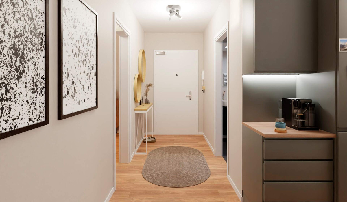 Diese durchdachte Wohnung bietet alles, was Feriengäste schätzen – und was sie gerne wiederkommen lässt. Der Eingangsbereich öffnet sich zu einem großzügigen Wohn- und Essbereich mit integrierter Küche – ein Ort für gemeinsames Frühstück und entspannte Abende. Drei gemütliche Schlafzimmer bieten Privatsphäre, zwei Bäder sorgen für Komfort. Der Balkon rundet das Angebot ab, ein Ort zum Abschalten und Genießen.