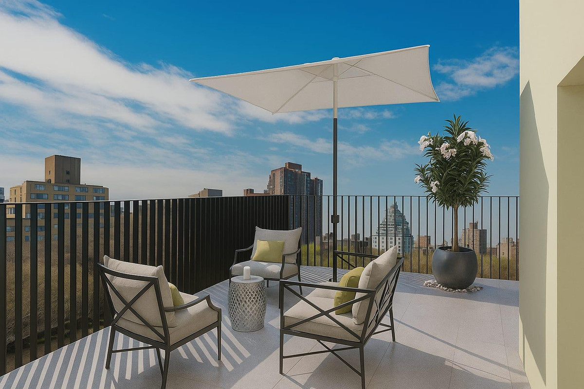 Die beiden exklusiven Penthouse-Wohnungen im Dachgeschoss bieten bis zu 149 m² Wohnfläche sowie beeindruckende 62 m² große Dachterrassen – ein außergewöhnliches Wohnerlebnis über den Dächern der Stadt.