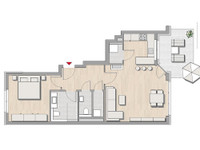 - Die Räume der Wohnungen werden mit einer Fußbodenheizung beheizt. Die Steuerung der Temperatur erfolgt in jedem Raum individuell.