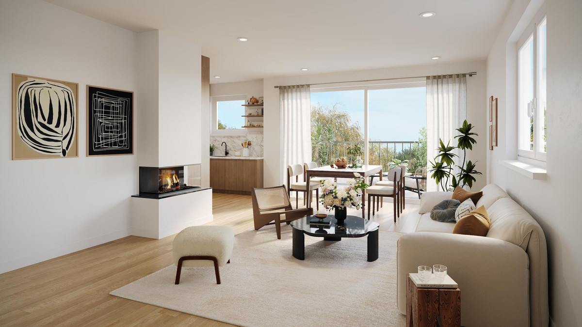- Die Wohnungen erhalten einen elektrisch betriebenen Kamin im Stil eines offenen Kamins.
