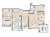 - Die Bäder, Duschbäder, WCs und HWRs erhalten Fliesenboden.