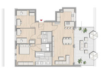 - Die Räume der Wohnungen werden mit einer Fußbodenheizung beheizt. Die Steuerung der Temperatur erfolgt in jedem Raum individuell.