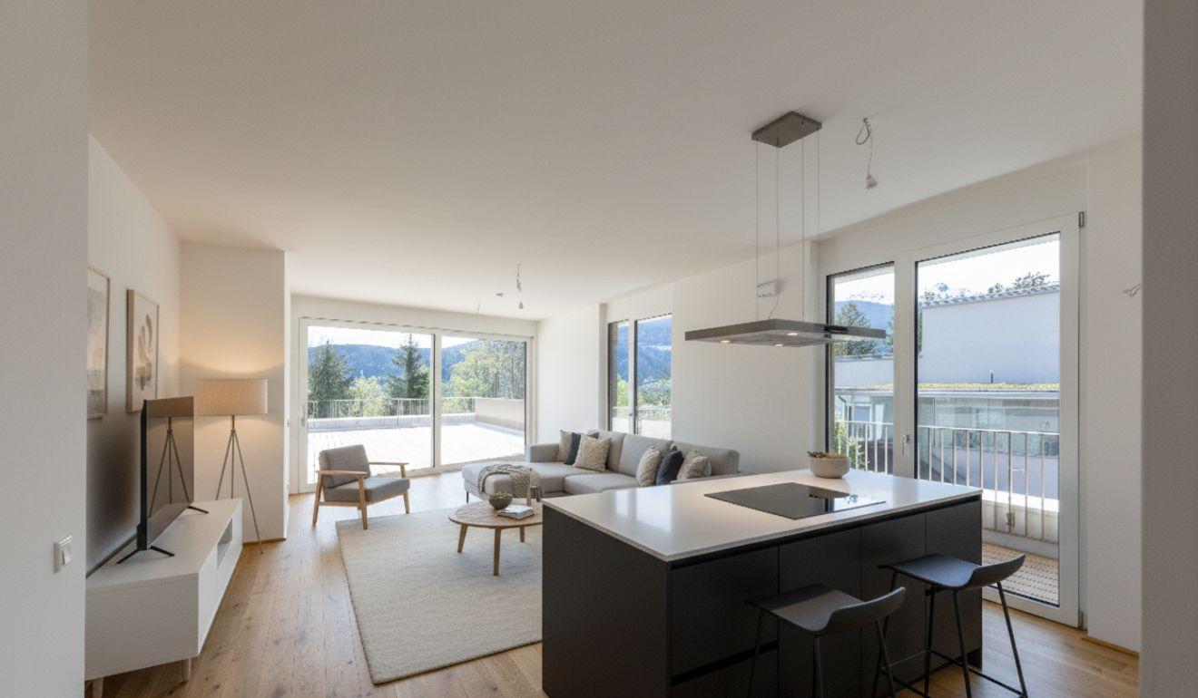 Die exklusive Wohnanlage K³ mit ihren 13 Wohnungen richtet sich an Käufer*innen auf der Suche nach stilvollem Wohnen zwischen Natur und Urbanität. Durch die sonnige Hanglage und die Einbettung in eine herrliche Waldlichtung genießen Sie bereits in den Wohnungen im Parterre einen fantastischen Ausblick über die umliegenden Berge.