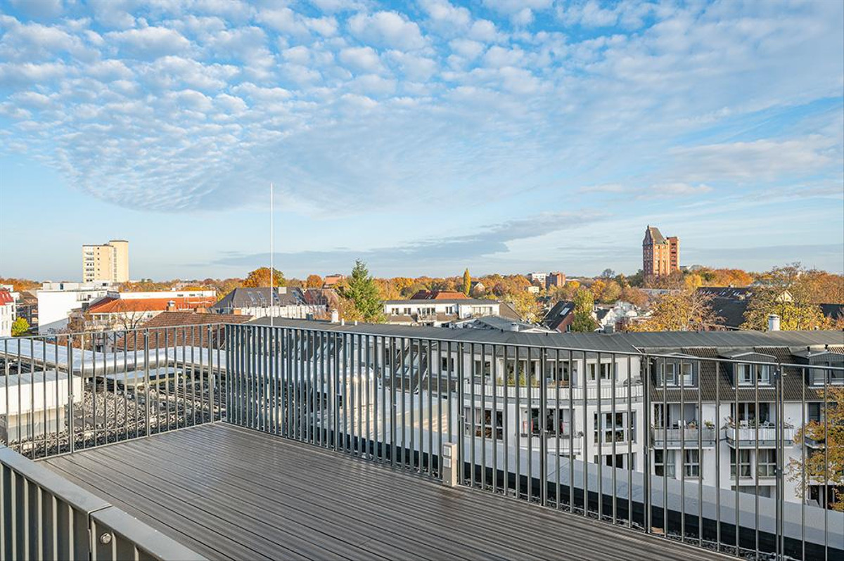 Das Penthouse bietet direkten Aufzugzugang und beeindruckende Ausblicke über die Umgebung von den verschiedenen Dachterrassen. Hier verbindet sich modernes Design mit urbaner Eleganz – Wohnen auf höchstem Niveau.